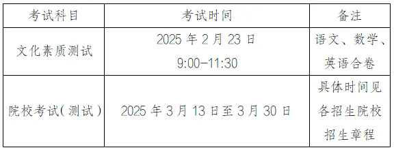 報考分類考試和對口招生的考生均須參加全省統(tǒng)一組織的文化素質(zhì)測試,成績達線考生方可參加招生院校組織的院??荚嚕y試)。