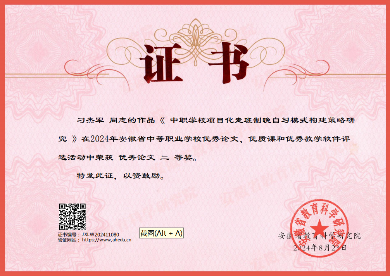 在這個(gè)充滿喜悅與收獲的季節(jié)里,我校再次傳來振奮人心的消息---在安徽省2024年中等職業(yè)學(xué)校優(yōu)秀論文、優(yōu)秀教學(xué)軟件和優(yōu)質(zhì)課評(píng)選中,我校3名教師憑借扎實(shí)的教育教學(xué)素養(yǎng)和過硬的教研能力,脫穎而出,共斬獲二等獎(jiǎng)2個(gè)、三等獎(jiǎng)1個(gè),再創(chuàng)佳績(jī)。