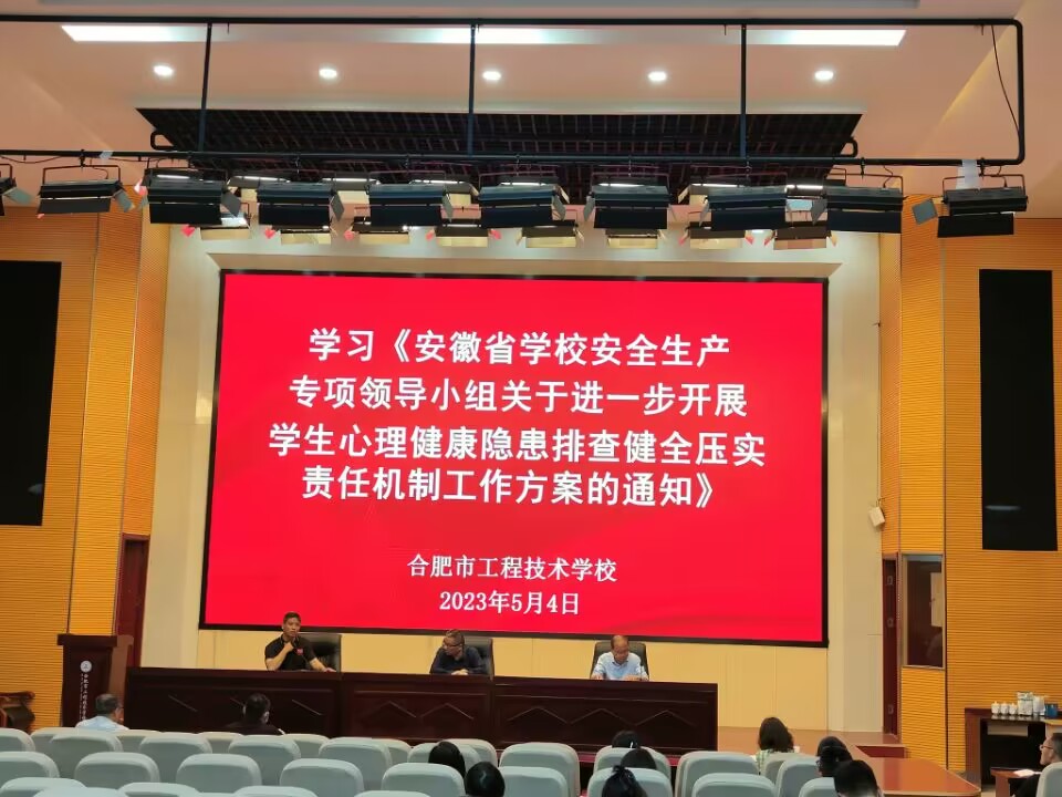 為深入貫徹落實(shí)合肥市校園安全工作電視電話會(huì)議精神,全力保障校園安全穩(wěn)定。5月4日下午,我校在多功能報(bào)告廳召開全體教職工大會(huì)。黨委書記、校長司有常,黨委副書記、副校長肖鋒,黨委委員、副校長潘明出席會(huì)議,會(huì)議由肖鋒主持,全體教職工參加會(huì)議。