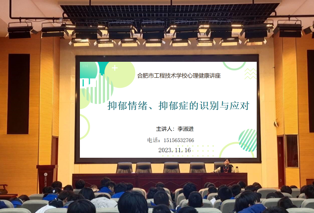 心理健康教育是中職學校德育的主要內(nèi)容。為落實立德樹人根本任務,廣泛宣傳心理健康知識,提高中職生心理健康水平,樹立正確的心理健康觀念。11月16日下午,我校在多功能報告廳舉辦了一場題為《抑郁情緒與抑郁癥識別與應對》的心理健康講座。本次講座由國家二級心理咨詢師、學校心理健康教研室主任李淑進老師主講,全體學生通過線上、線下兩種方式聆聽講座。其中,22級機電3班、22級計算機1班、23級計算機班的學生在多功能報告廳以線下方式參與,其余班級的學生在班級以線上方式參與。