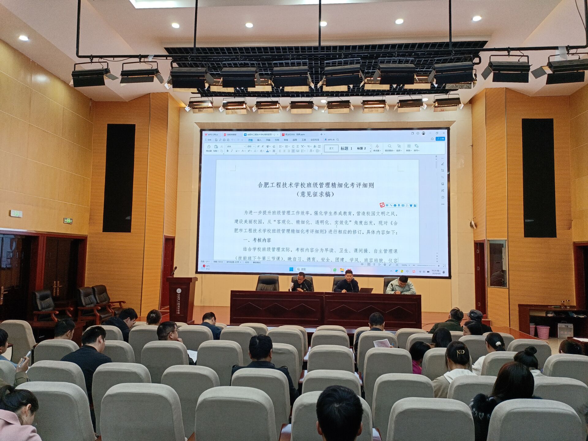 刁杰軍對《班級精細化考評細則》(意見征求稿)進行解讀,他指出為了進一步提升班級管理工作效率,從“客觀化、精細化、透明化、實效化”角度出發(fā),對考評內(nèi)容及對應(yīng)考評分值進行修改。希望全體班主任集思廣益,積極建言獻策,對班級精細化考評方案提出合理化建議,推動考評工作更科學(xué)、完善。
