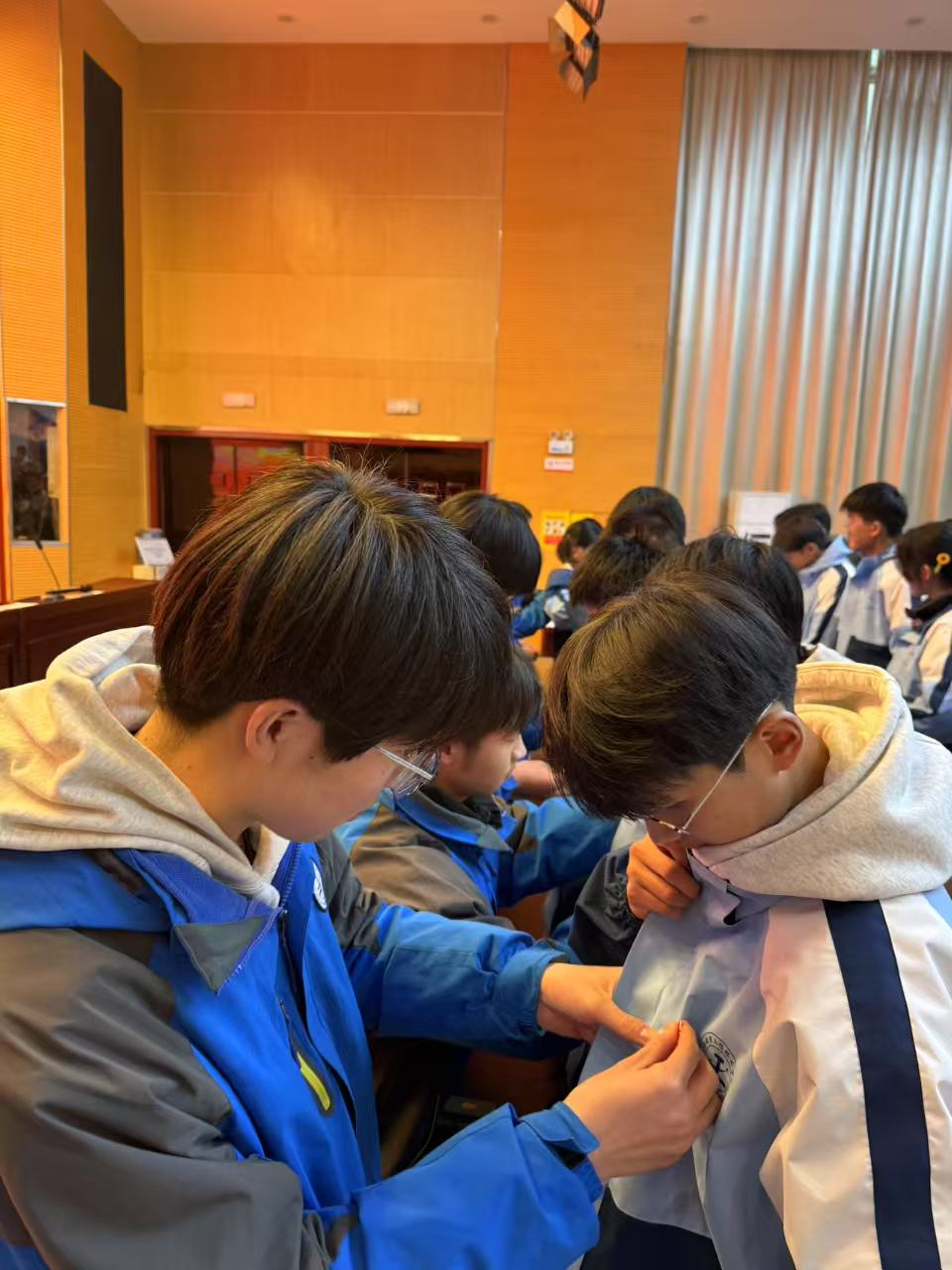 隨后,老團(tuán)員代表為新團(tuán)員佩戴團(tuán)徽、發(fā)放團(tuán)員證。團(tuán)徽在胸前熠熠生輝,不僅象征著共青團(tuán)的榮耀與使命,更激勵(lì)著每一位新團(tuán)員在新征程的道路奮勇前行。團(tuán)委副書(shū)記周智源帶領(lǐng)全體新團(tuán)員莊嚴(yán)宣誓。鏗鏘有力的誓言,詮釋著新團(tuán)員光榮的時(shí)代擔(dān)當(dāng);握緊的右拳,表明了團(tuán)員們堅(jiān)定的信念和決心。