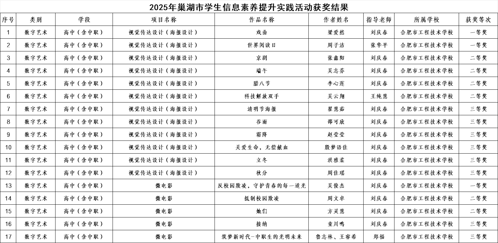 春華秋實結(jié)碩果,信息素養(yǎng)啟新篇。近日,2025年巢湖市學(xué)生信息素養(yǎng)提升實踐活動評比結(jié)果揭曉,我校學(xué)子憑借扎實的信息技術(shù)功底、創(chuàng)新思維和團隊協(xié)作能力,共取得了一等獎3項、二等獎6項、三等獎8項的優(yōu)異成績,充分展現(xiàn)了我校學(xué)子德技并修的豐碩成果!