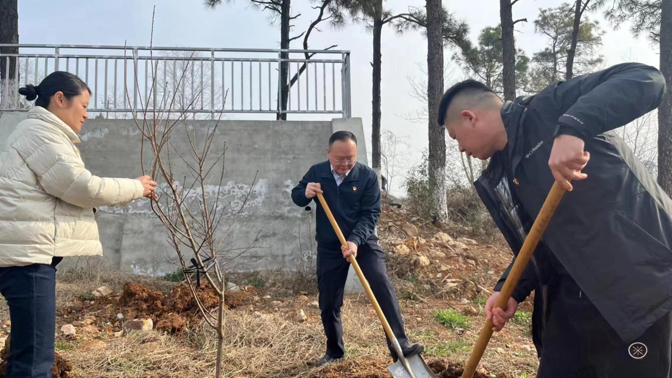 一桶清水,灌溉希望,一棵樹苗,承載未來。植樹現(xiàn)場,黨旗飄揚,黨員同志們熱情高漲、干勁十足,大家發(fā)揚不怕苦、不怕臟、不怕累的精神,分工協(xié)作、揮鍬鏟土、扶樹填坑、踏土夯苗、提水澆灌,有條不紊地完成植樹各個環(huán)節(jié)。經(jīng)過共同努力,一株株新栽種的桃樹苗迎風(fēng)挺立,為大地增添了勃勃生機。