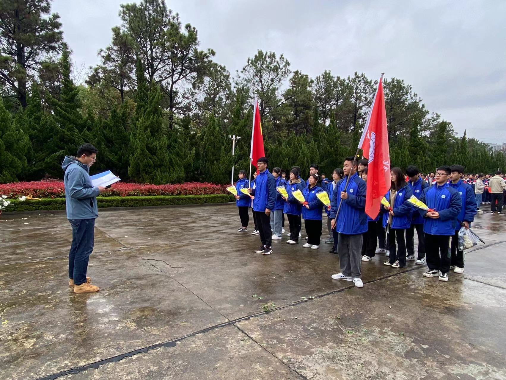 青山埋忠骨,清明寄哀思。4月4日上午,我校團(tuán)委組織青年教師代表與學(xué)生代表來(lái)到巢湖市南山烈士陵園的革命烈士紀(jì)念碑下向革命先烈獻(xiàn)花。活動(dòng)現(xiàn)場(chǎng),氣氛莊嚴(yán)肅穆,烈士紀(jì)念塔巍然聳立,蒼松翠柏環(huán)繞左右。細(xì)雨沾濕衣襟,全體師生代表整齊肅立,低頭默哀,深刻緬懷革命先烈的豐功偉績(jī),追思他們?yōu)榱藝?guó)家獨(dú)立和民族解放而凝結(jié)的無(wú)數(shù)心血與奉獻(xiàn)。在老師的帶領(lǐng)下,全體同學(xué)現(xiàn)場(chǎng)聆聽(tīng)英勇事跡,實(shí)地感悟革命精神,于心繼承英烈意志。隨后同學(xué)們懷著崇敬的心情向革命烈士紀(jì)念碑敬獻(xiàn)鮮花并繞碑一周瞻仰紀(jì)念碑,以表達(dá)對(duì)革命先烈們崇高的敬意和深切悼念之情。最后全體師生代表面向鮮艷的團(tuán)旗,舉起右手,重溫入團(tuán)誓詞,聲音嘹亮,慷慨激昂,在感懷英烈付出,追慕英烈精神的同時(shí),更將這種精神根植心中,融進(jìn)血脈,要在不同的崗位上以自己的實(shí)際行動(dòng)做出應(yīng)有的貢獻(xiàn)。