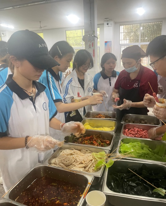 自制缽缽雞:“缽缽雞,一元一串的缽缽雞”。這是線下一種很火的網(wǎng)紅小吃,通過(guò)這次活動(dòng),讓孩子們也來(lái)制作一把潮流小吃“缽缽雞”。