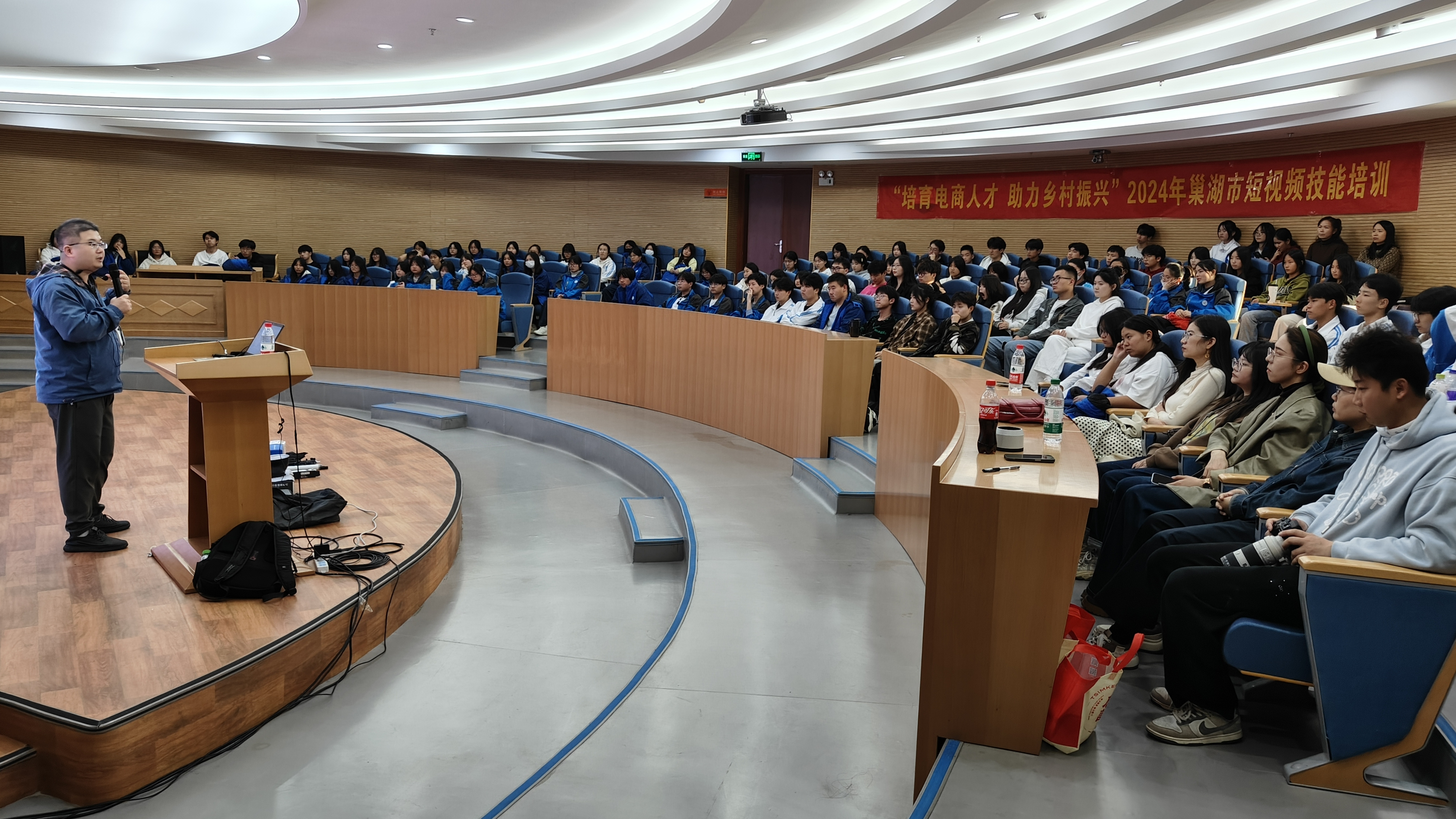 為進一步提升我校電子商務(wù)專業(yè)學(xué)生的專業(yè)素質(zhì)和能力水平,增強專業(yè)自信和職業(yè)規(guī)劃意識,更好適應(yīng)即將到來的實習和就業(yè),滿足社會發(fā)展和鄉(xiāng)村振興對電商人才的需求,11月10日下午,學(xué)校組織2022級和2023級近百名電子商務(wù)專業(yè)學(xué)生赴巢湖市圖書館,聆聽由巢湖市商務(wù)局主辦,以“培育電商人才 助力鄉(xiāng)村振興”為主題的短視頻技能培訓(xùn)講座,相關(guān)班主任和部分電商專業(yè)教師參加了講座活動。