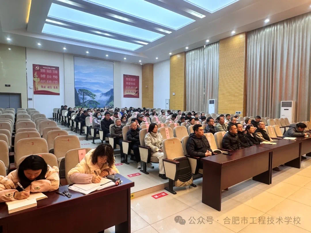 祥蛇納福至,新歲瑞光盈。為全面總結過去一學期的工作成果,展望新一年的發(fā)展方向,凝聚全體教師共識,強化師德師風建設,推動學校各項工作高質量發(fā)展。1月23日,我校召開2024-2025學年度第一學期期末工作會議。校黨委書記王成滿,校長潘明出席會議并發(fā)表講話。會議由校黨委委員劉圣賢主持,全體教職工參會。
