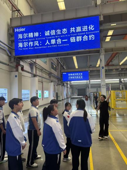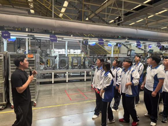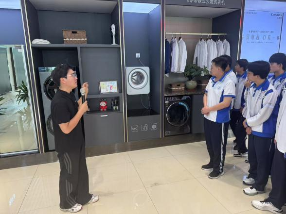 師生首站來到合肥海爾滾筒洗衣機智能制造基地。在工廠車間里,同學們親眼見證了高度自動化的生產(chǎn)線和嚴苛的質(zhì)量檢測流程。從精密的零部件組裝到整機的嚴格檢測,每一個環(huán)節(jié)都彰顯了海爾品牌對品質(zhì)的執(zhí)著追求和對細節(jié)的極致關注。在這里,同學們深刻感受到了科技創(chuàng)新與智能制造的完美結(jié)合,也對中國制造業(yè)的現(xiàn)代化水平有了全新的認知。